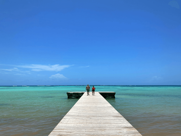 The deck along the powdery white beach of the all-inclusive Hyatt Zilara Resort. The calm waters are perfect for learning to sail on a catamaran.